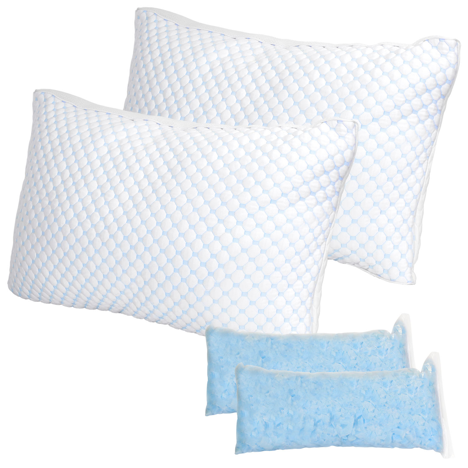 2 Pack Shredded Memory Foam Pillows Adjustable Cool Pillows with Extra Filling Machine Washable Cover for Side Back Stomach Sleepers