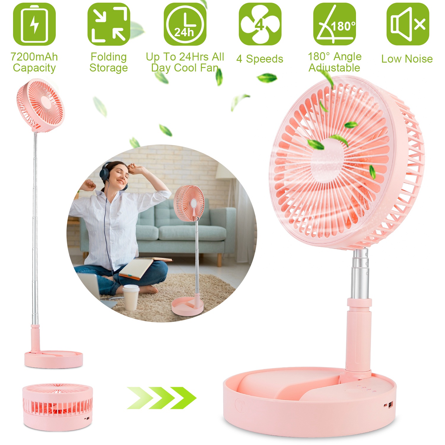 Home > Portable Folding Desk Table Fan Quiet USB Rechargeable Telescopic Standing Floor Fan w/ 4 Speeds Adjustable Height 180° Tilting Angle For Office Home