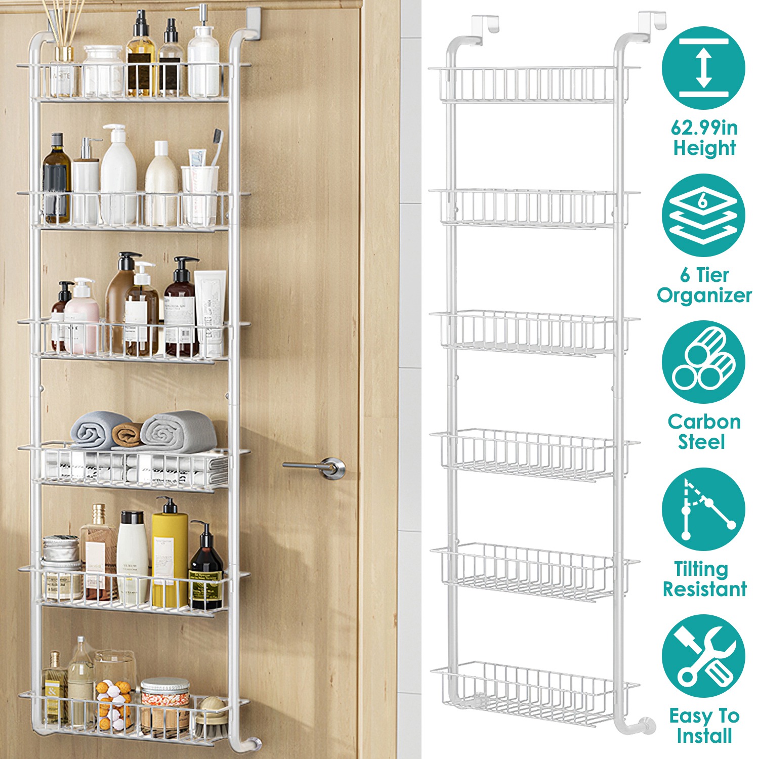 Home > 6 Tier Over Door Pantry Organizer Hanging Hooks Door Storage Rack Carbon Steel Basket 62.99in Over Door Shelf for Kitchen Bathroom