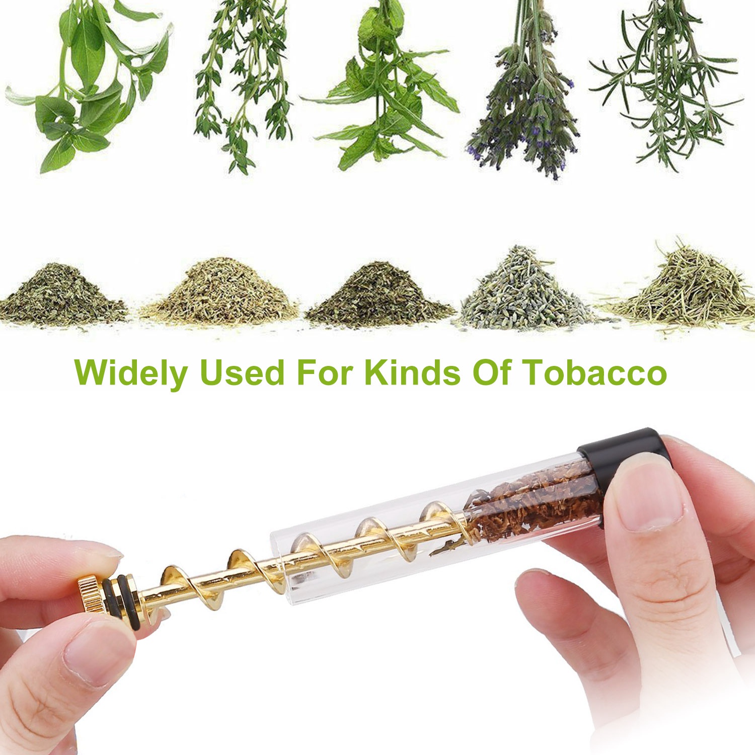 You can fill this awesome pipe with dry herbs or spices as tight and full as you like owing to the auger system to enjoy full flavor, and have no worry about your fingers and lips getting sticky or stained. It is designed with a twisty herb splitter and sealed by double rubber circle rings that ensure you have a good taste without getting any ash in mouth. And it comes a second glass tube for convenient replacement and one cleaning brush that rubs against the inside of the glass and cleans the glass while resonating.