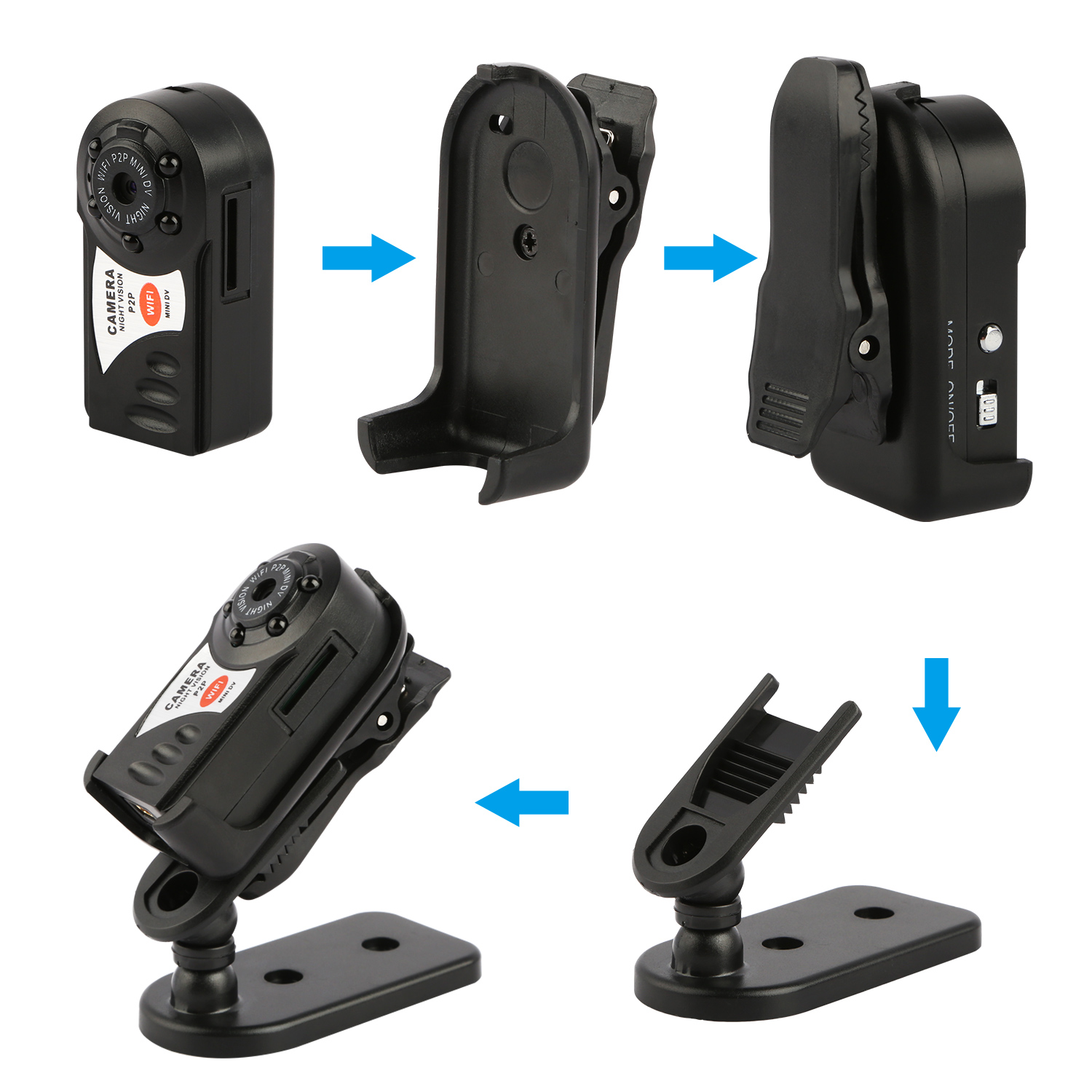 This mini surveillance camera is almost as big as two fingers so that you can put it anywhere you want and get it hard to be found. When plug it into an outlet power socket, it will realize 24/7 hour continuous video recording with the built-in microphone and 5 infrared lamps. It is very easy to connect with your smart phone and see it anywhere on the included APP which can be downloaded from Google Play or App Store. To store videos, additional TF card is required on camera. After that, just get out the TF card from the camera and use the included card reader to access the video footage. You can copy all video files to a computer before playing them back.