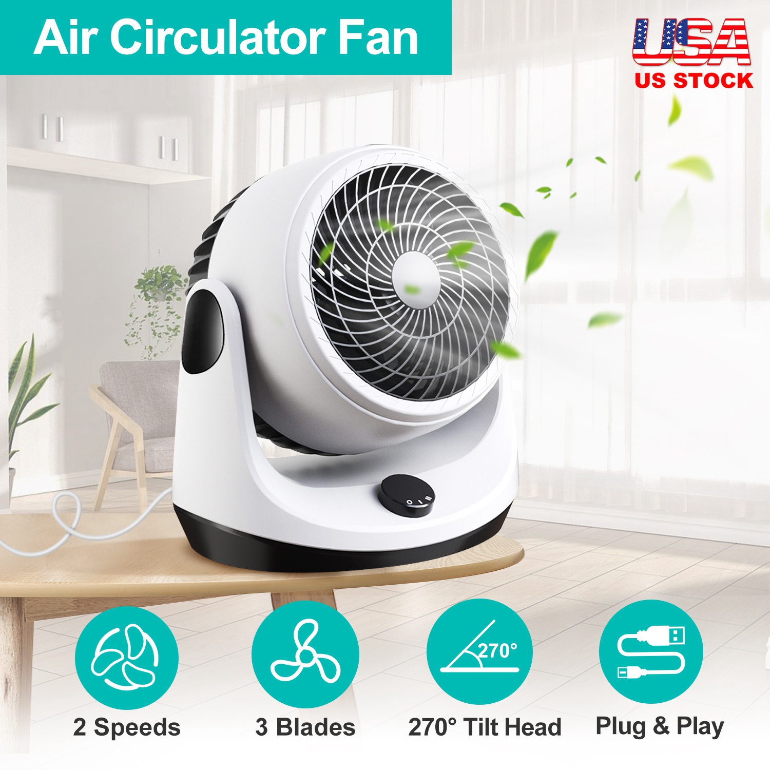 Table Desktop Fan Air Circulator Office Fan with 2 Speeds 270° Adjustable Head USB Plug Play for Room Office Kitchen Office
