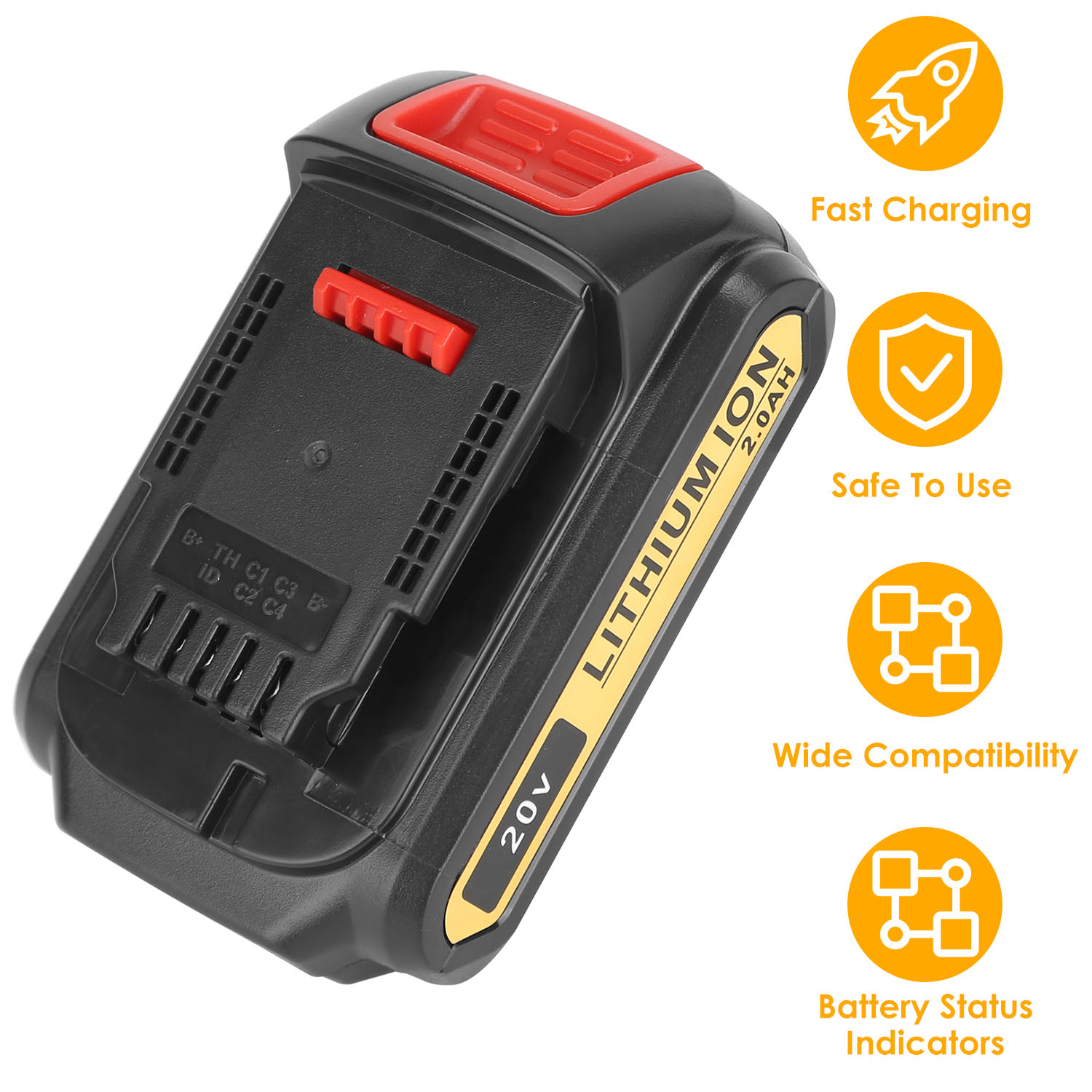 This battery is compatible with Dewalt 20-Volt cordless power tools and charges. It’s a replacement battery for DEWALT DCB180, DCB181, DCB182, DCB201, DCB201-2, DCB200, DCB200-2, DCB204-2, DCB205-2, DCB206-2, DCB207, DCB206, DCB205, DCB204, DCB203, DCB183, DCB184, and DCB185.