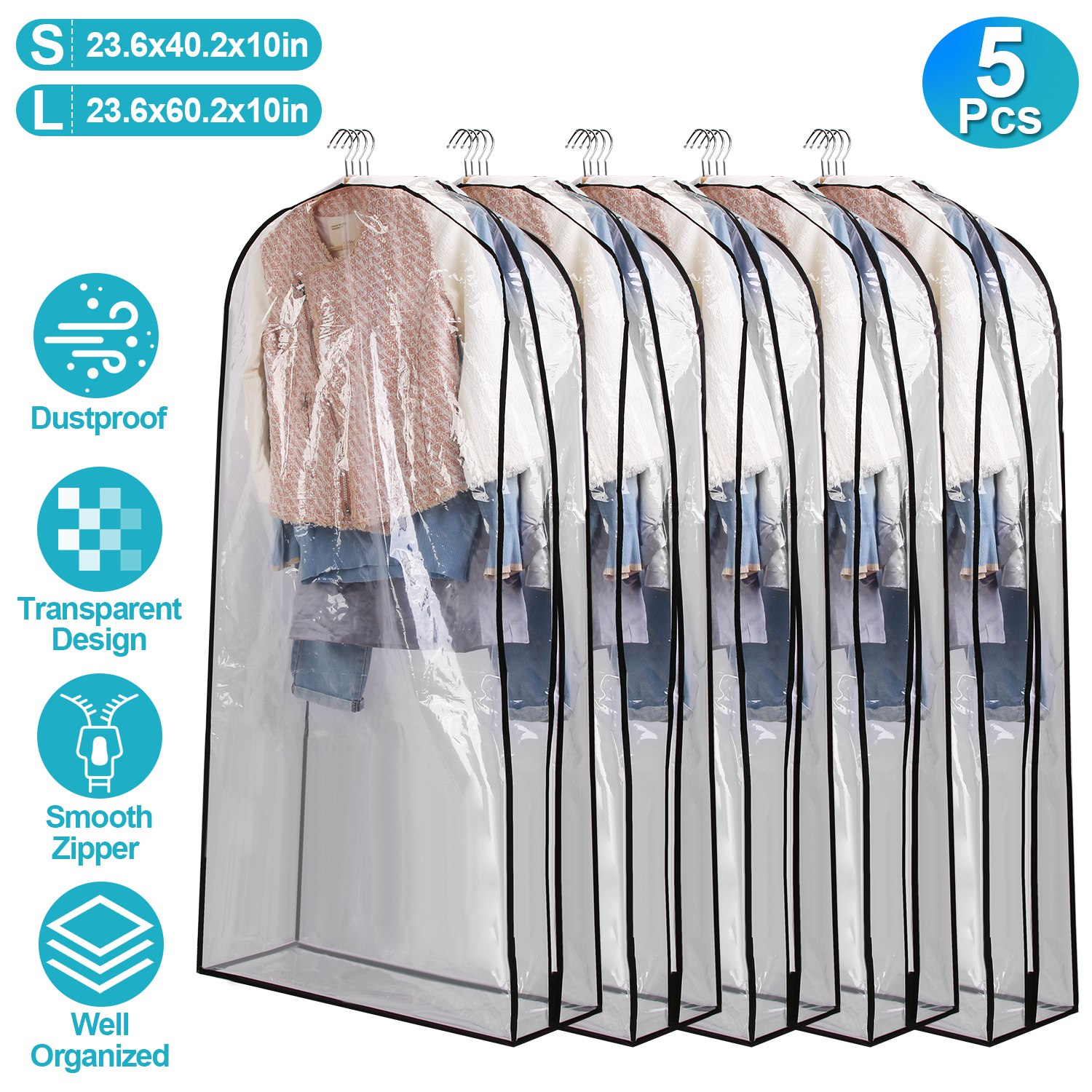 5 Pack 60In Garment Bag for Hanging Clothes Dustproof Waterproof Hanging Clothes Storage Bag Clear Transparent Suits Cover for Sweater Jacket Coat Dre