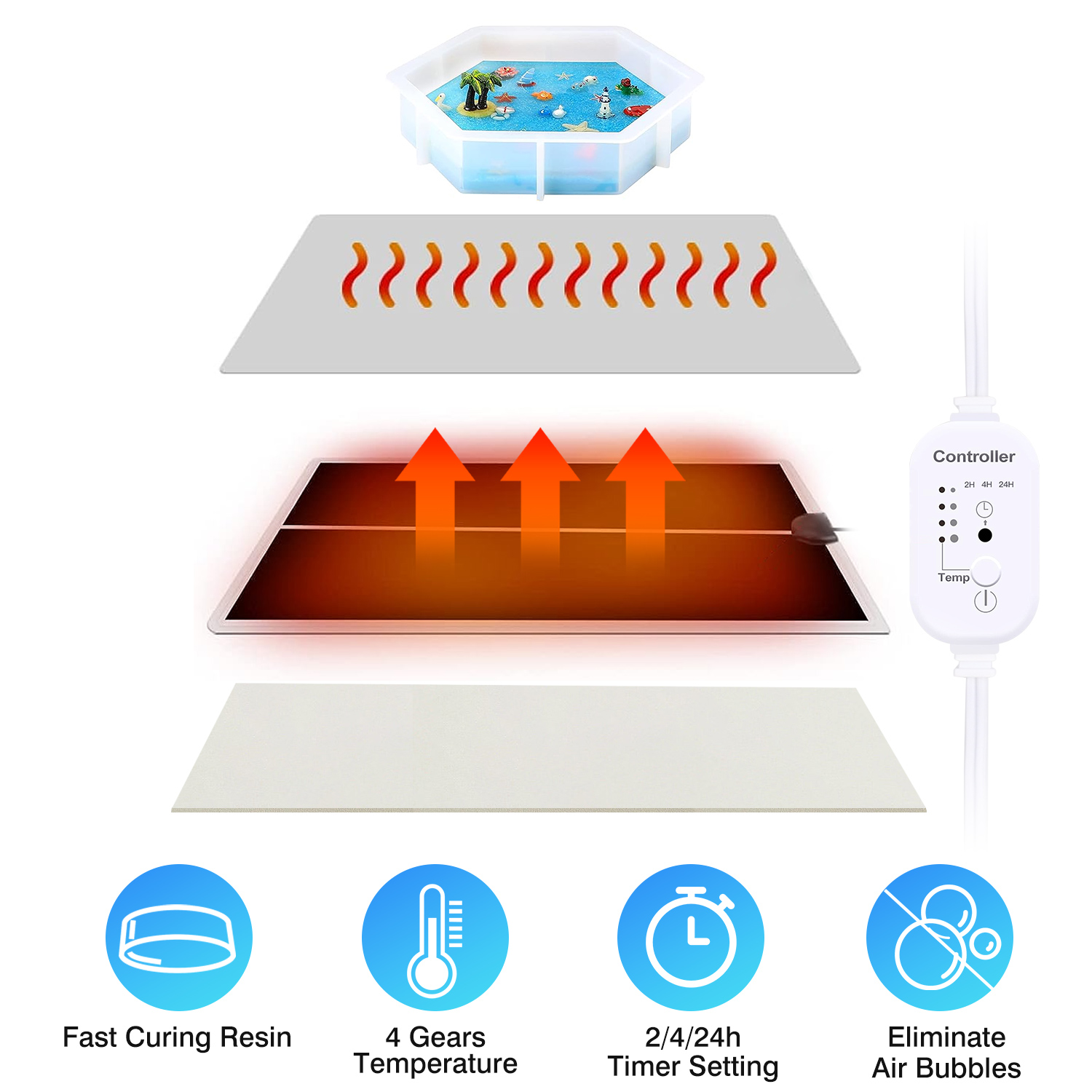 Home > Resin Heating Mat with Smart Timer Setting Resin Curing Machine Silicone Mat Resin Dryer 4 Gear Temperature Adjustment for Resin Mold Silicone Mold Ep