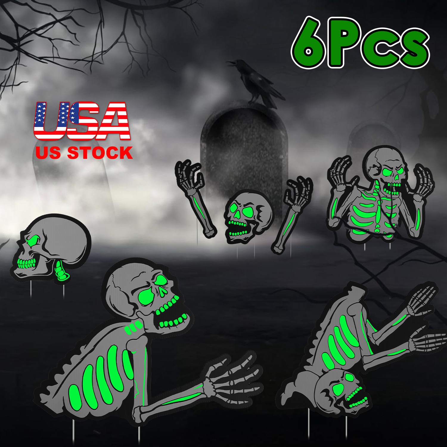 Home > Halloween Skeleton Yard Sign Decorations 6Pcs Glow in the Dark Halloween Skull Fluorescence Lawn Garden Sign with 12 Stakes for Haunted House Garden Y