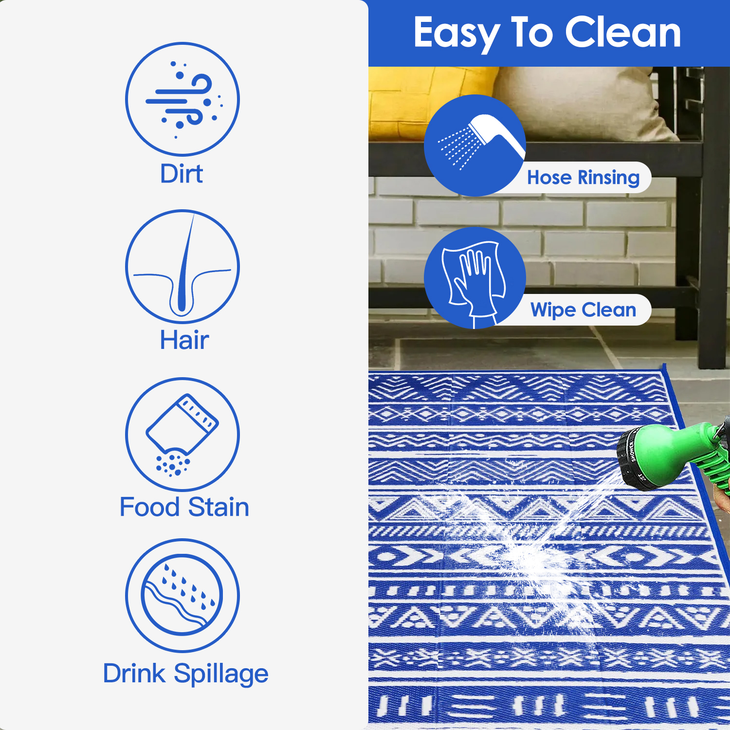 Home > 4.98x8FT Reversible Outdoor Rug Waterproof Mat with Storage Bag Portable Plastic Carpet Indoor Outdoor Activity for Picnic Patio Deck RV Trip Blue & W