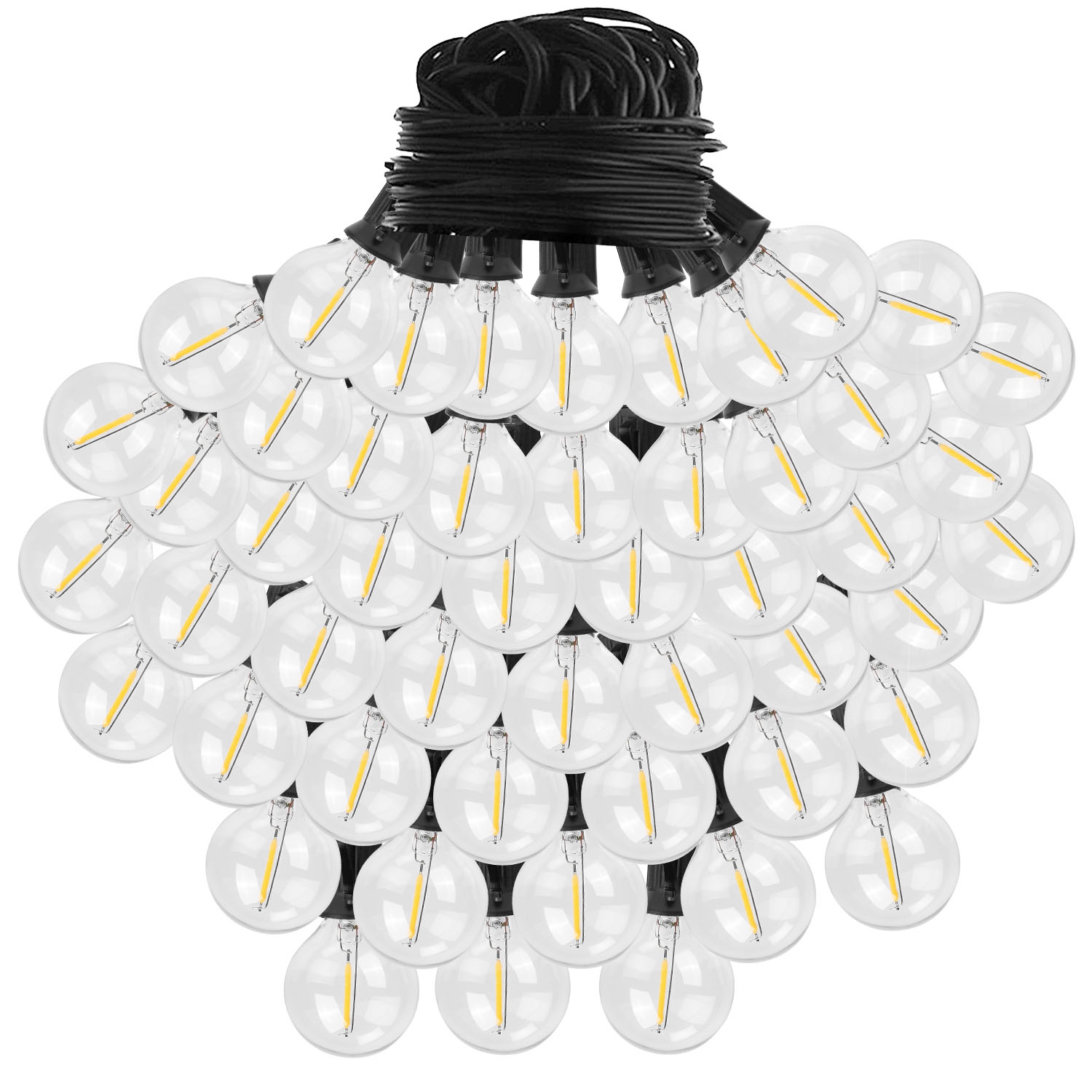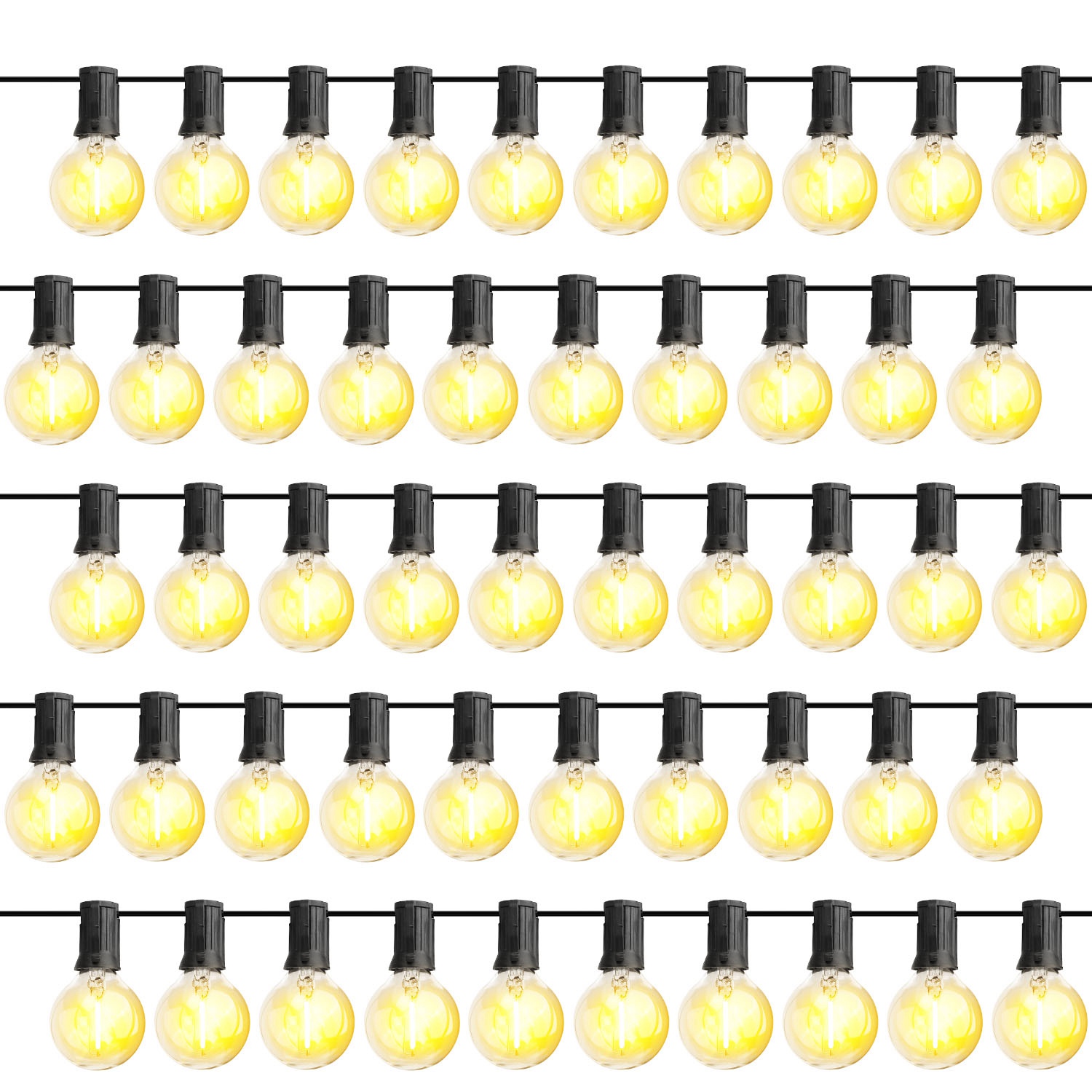 Adopting 50pcs 2700K warm glass bulbs strung through a 50ft long cord, can create a warm, cozy and relaxing atmosphere for garden, backyard, patio and more. Moreover, it can connect another 3 light strings at the same time through the attached tail plugs to customize your decoration. Optimal for the decoration of Christmas, parties, wedding, festival, etc.!